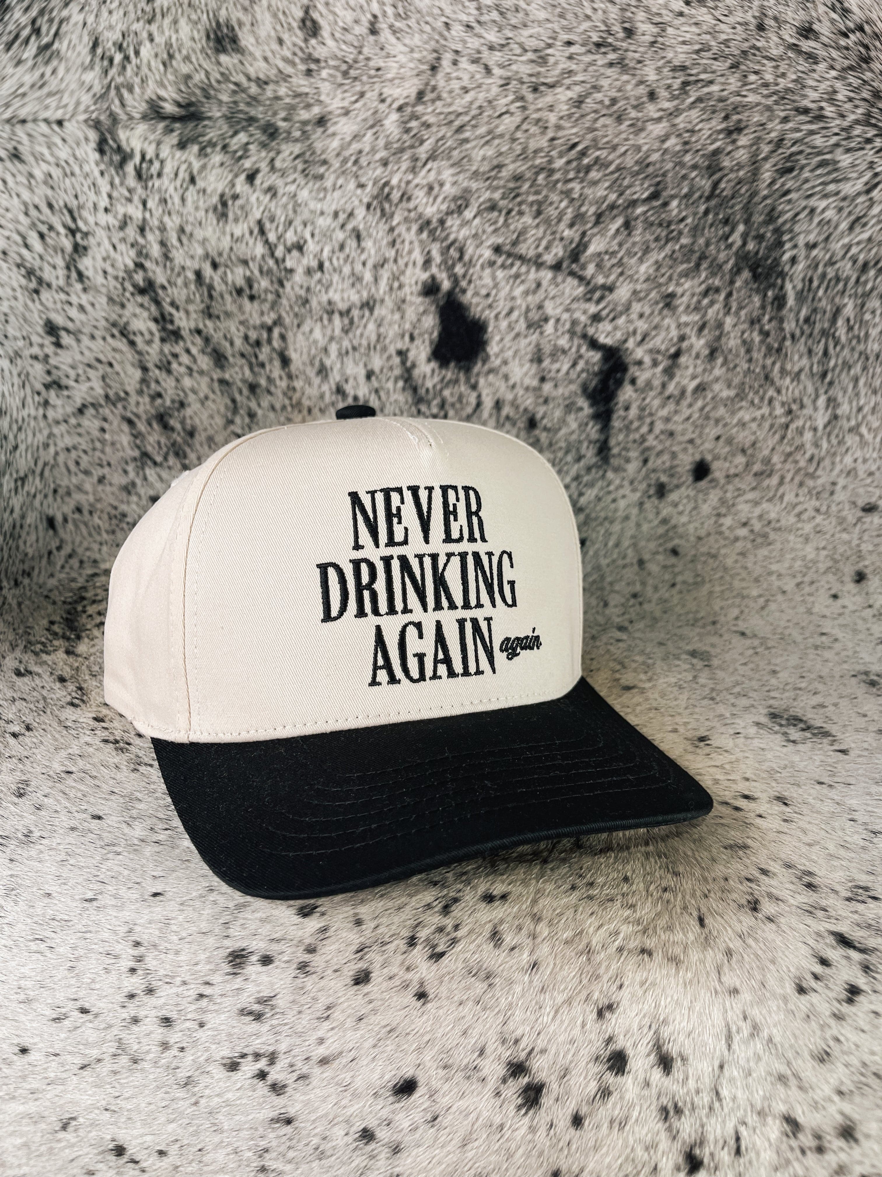 “Never Drinking Again, Again” Trucker style fit!