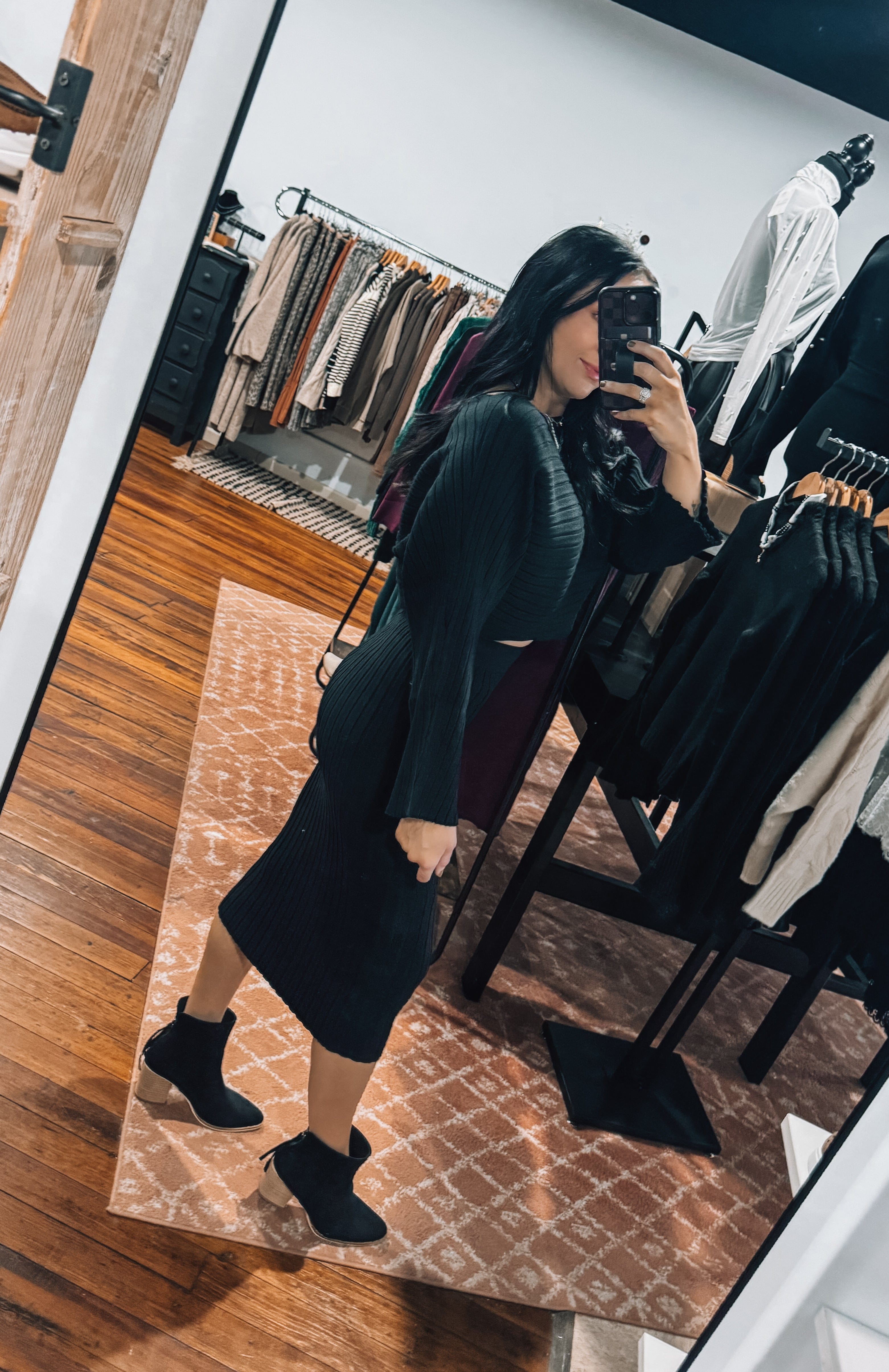 This set is so dynamic! Wear together for an effortless look or mix and match top and bottom with sweaters or your favorite denim! TTS, Erin is wearing a size Small!