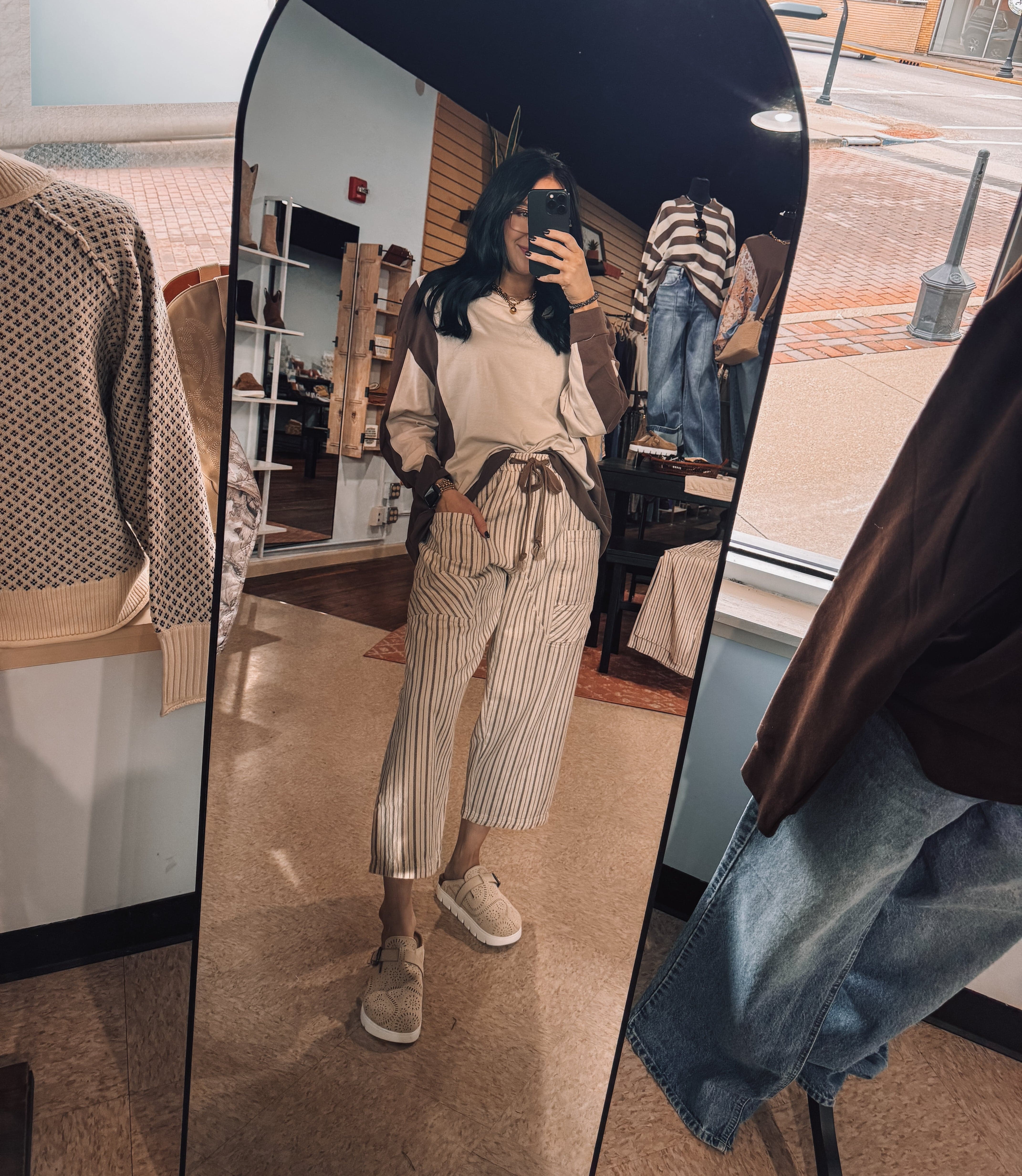 Elevate your wardrobe with the Shelby Pants, featuring a versatile barrel fit that effortlessly complements any style. Their trendy design pairs beautifully with both neutral tops and vibrant oversized tees, making them perfect for any occasion. Enjoy comfort with the drawstring waist while looking chic and stylish. These run big! Erin is in the small!