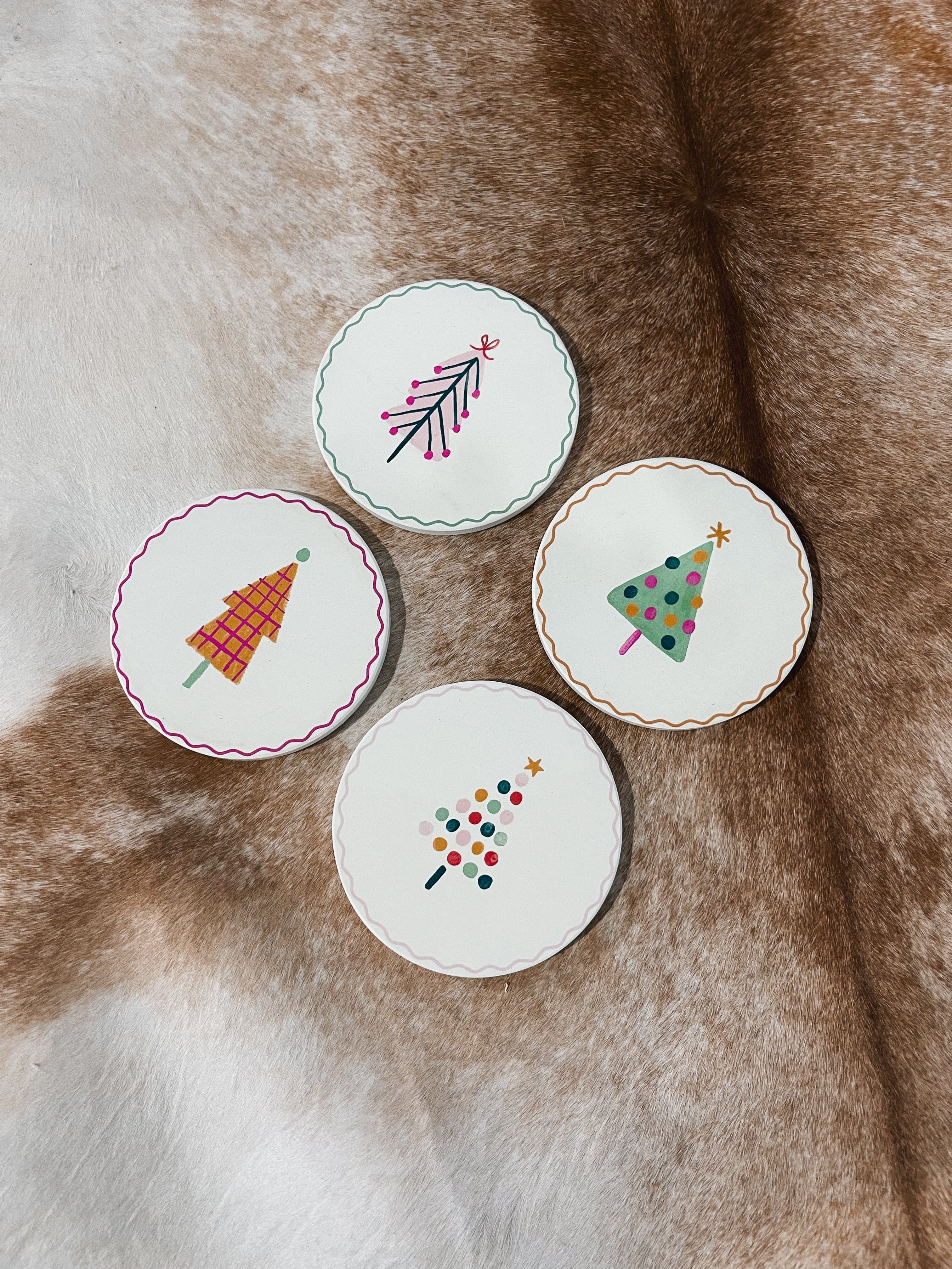 Set of four ceramic coasters with cork bottoms so they won’t scratch!