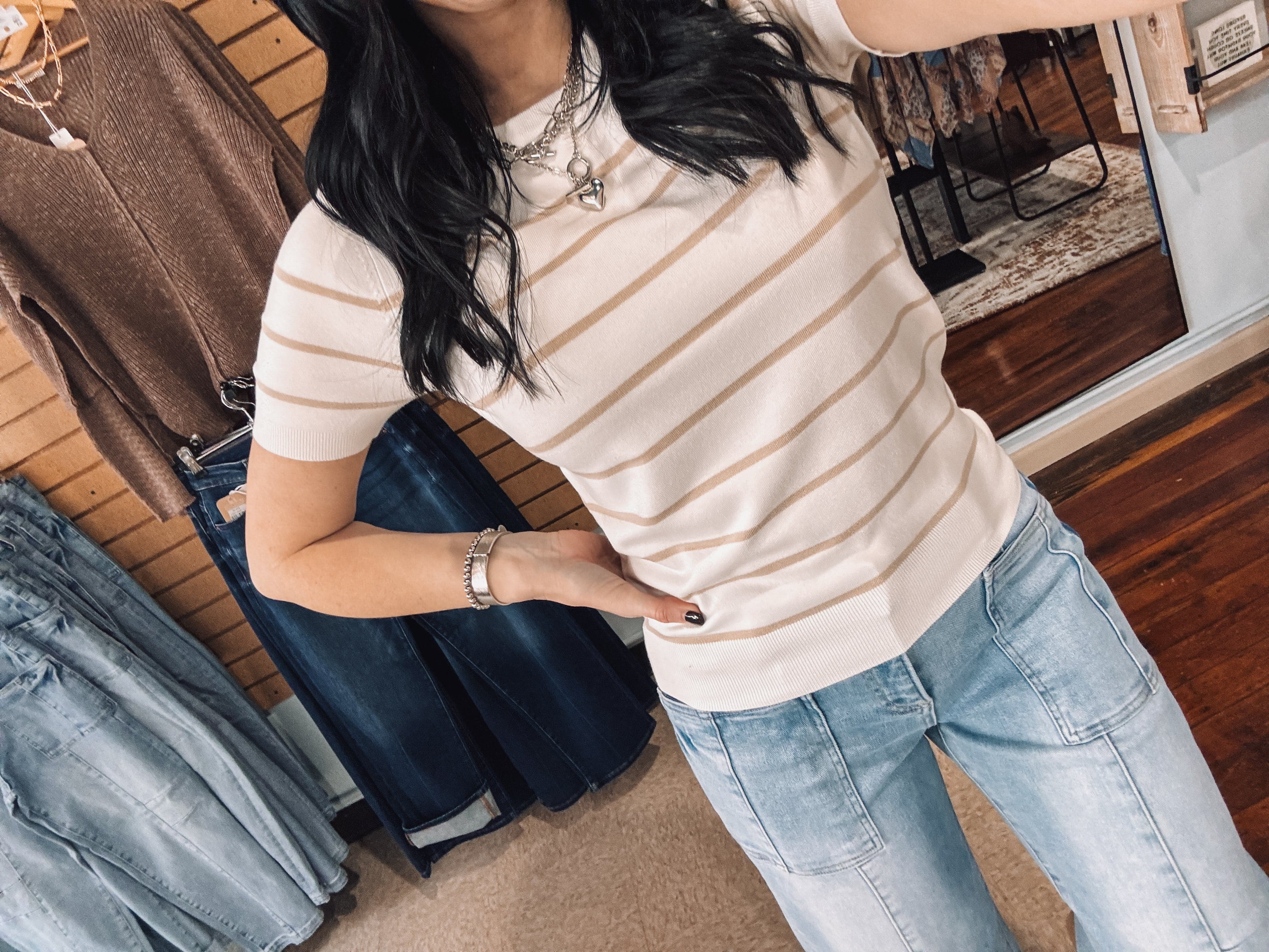 Embrace effortless style with the Dena Top! Crafted from super soft sweater material, this versatile piece captures the essence of spring. Dress it up for a night out or keep it casual for cozy days—it's the perfect blend of comfort and fashion. Elevate your wardrobe today! Erin is in the small!