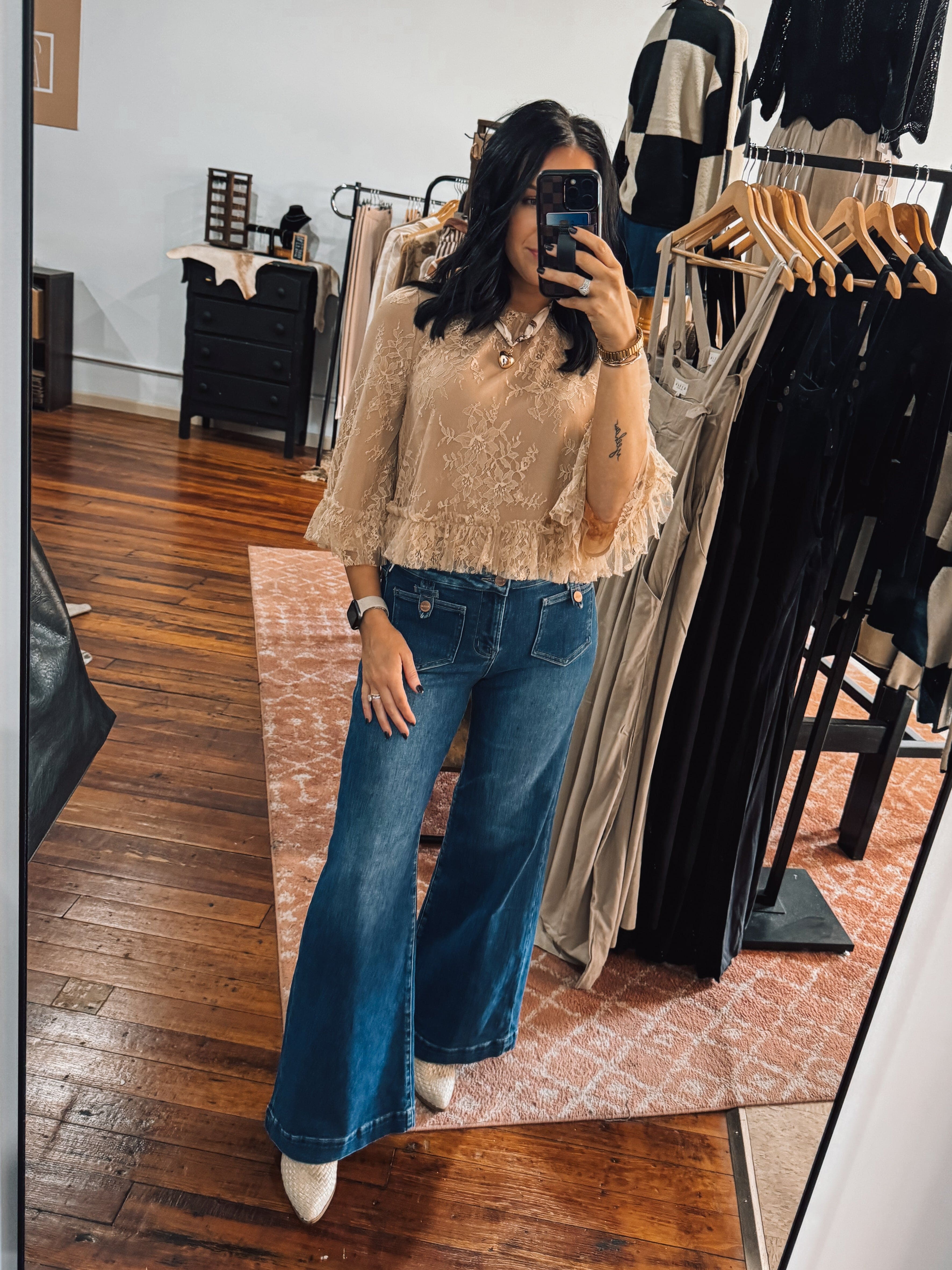 The top of our dreams! Lace overlay with the perfect flowy fit! TTS, Erin and Becky are both wearing a size Small!