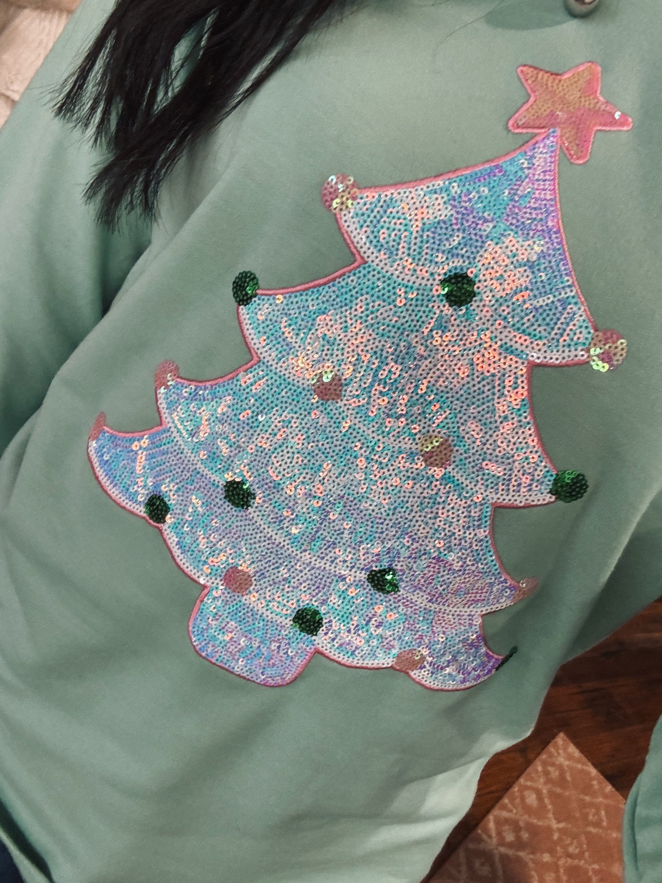 A little holiday sparkle! SO comfy, TTS, Erin is wearing a size Small!