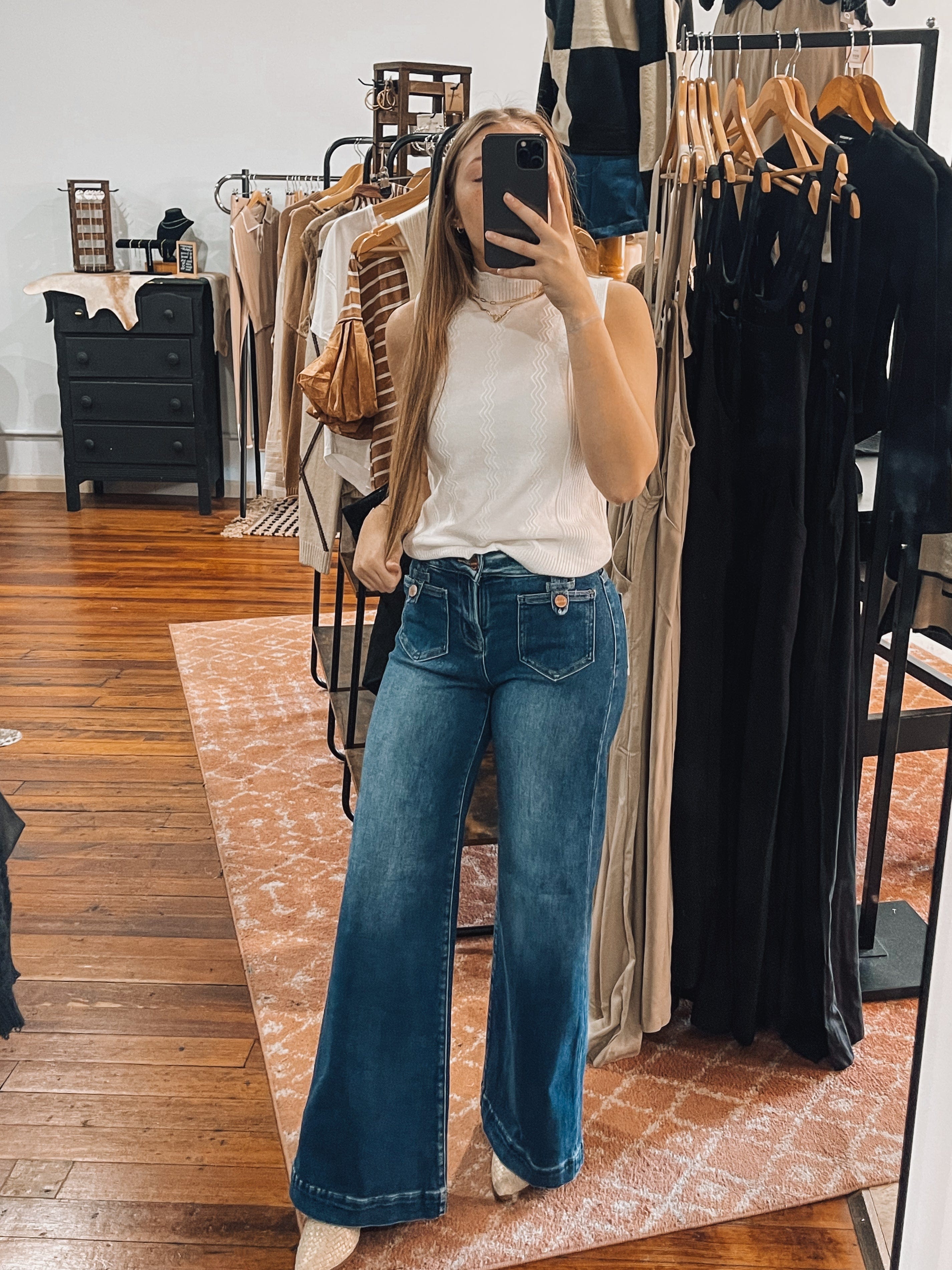 We love the texture & feel of this top! A statement piece to create an easy ‘fit for every event! TTS, Erin and Harleigh are both wearing a size Small!