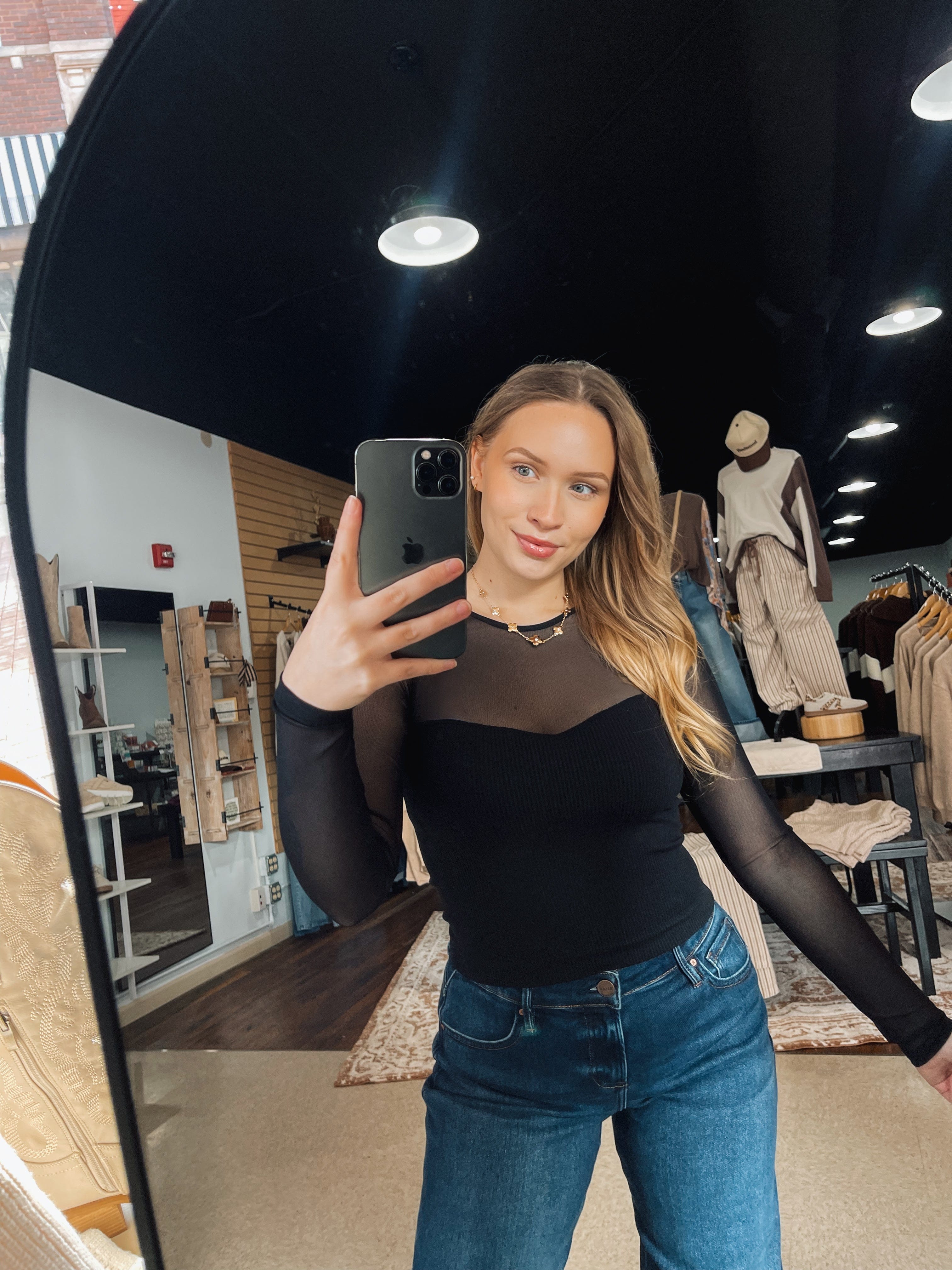 Mesh sweetheart neckline that flatters everyone! Form fitted & ribbed with stretchy material that feels so comfortable! TTS, Hannah is in a size S!