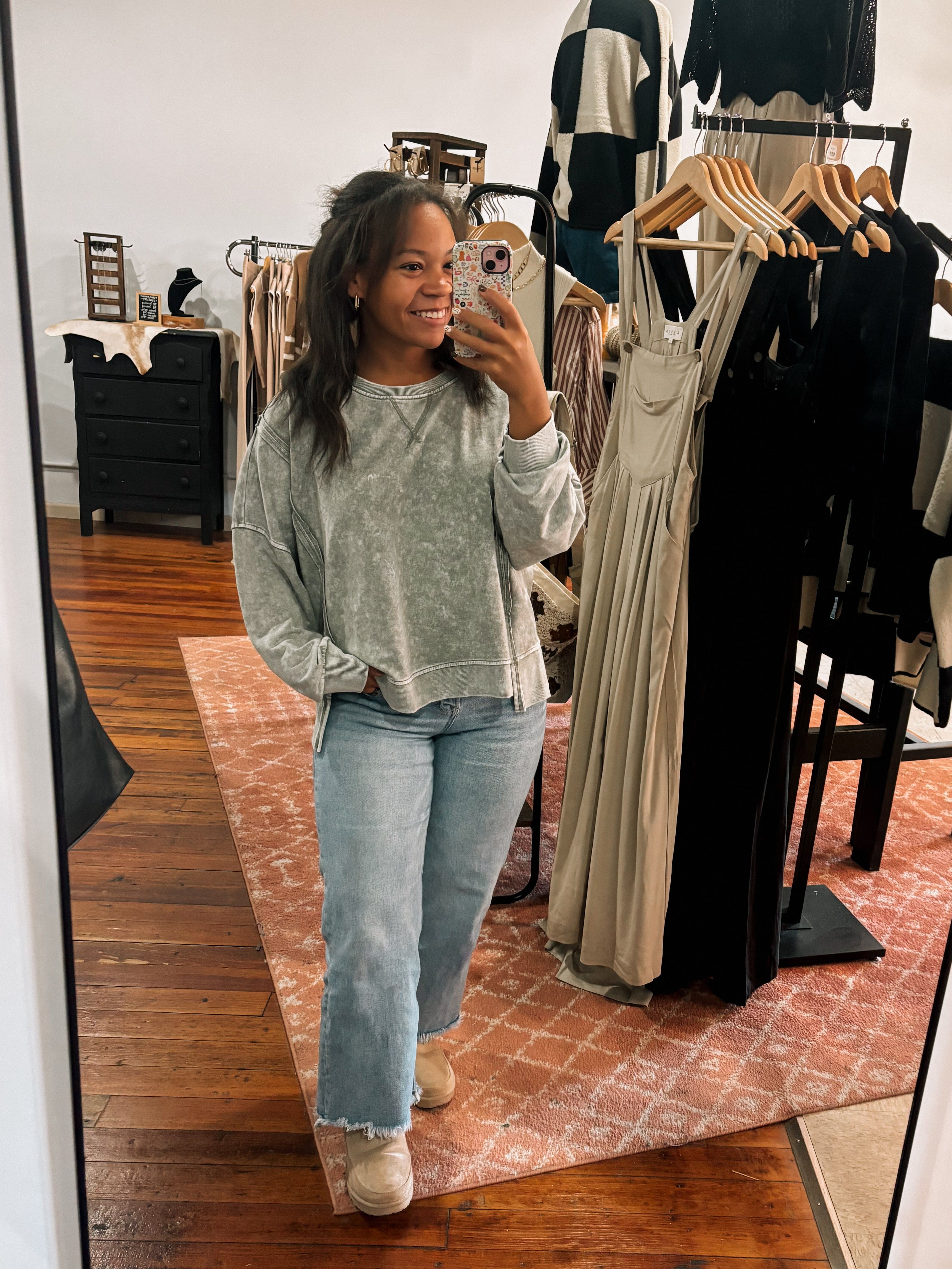 Mineral wash meets a gorgeous soft green! TTS, Cyrah is wearing a size Small!